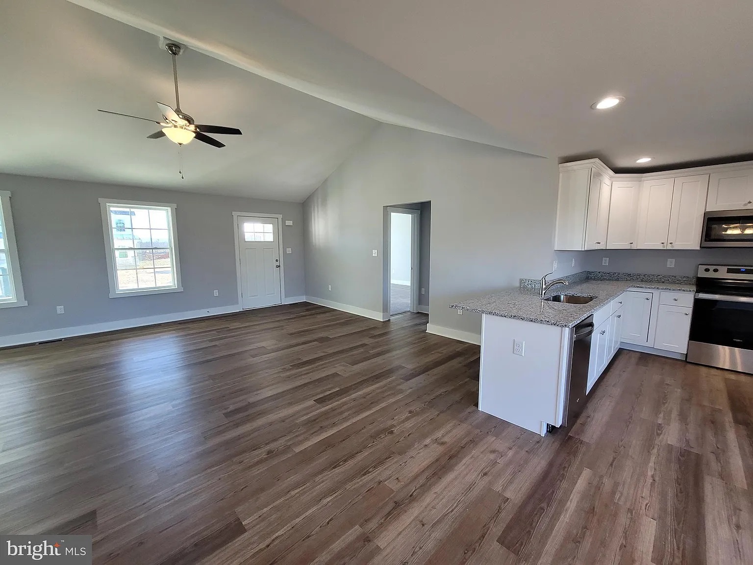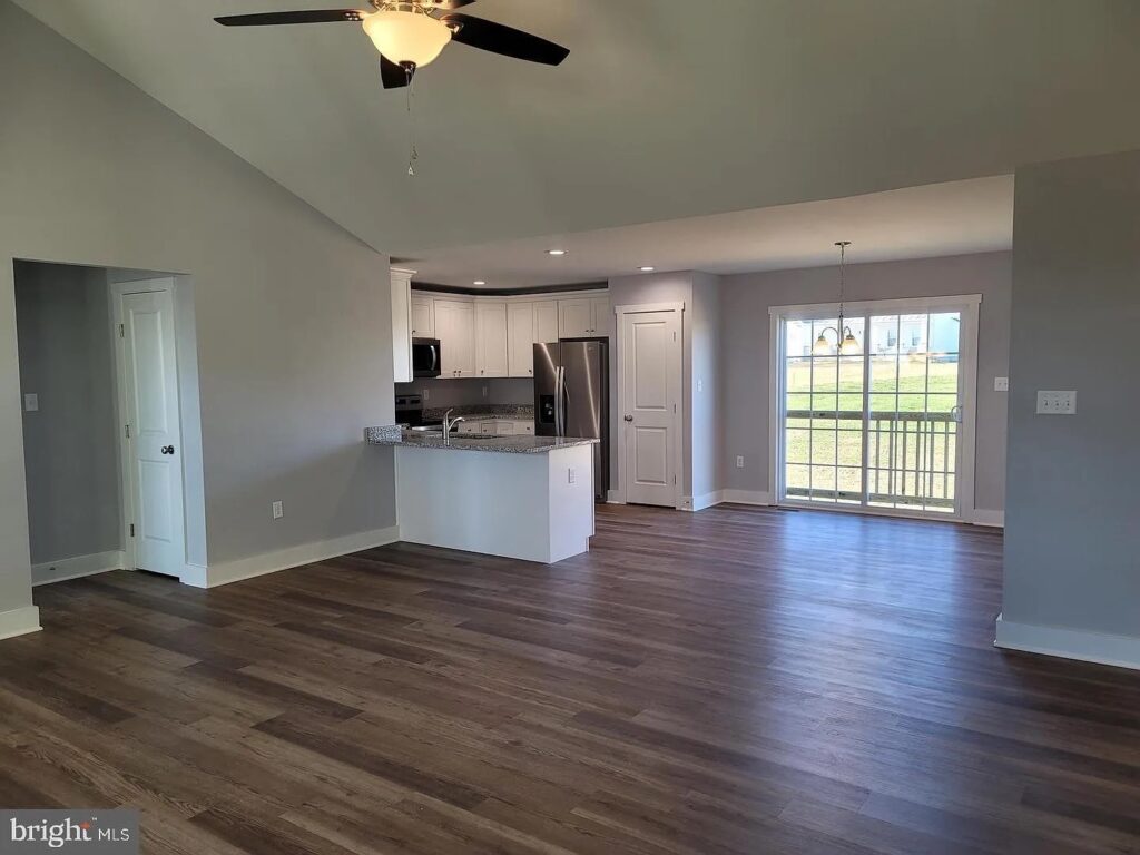 Step through the front door into a bright, open-concept living area, where the spacious great room, dining area, and kitchen blend seamlessly together. The kitchen is designed for everyday living and entertaining alike, featuring ample cabinet storage, a center island, and convenient proximity to the dining space.