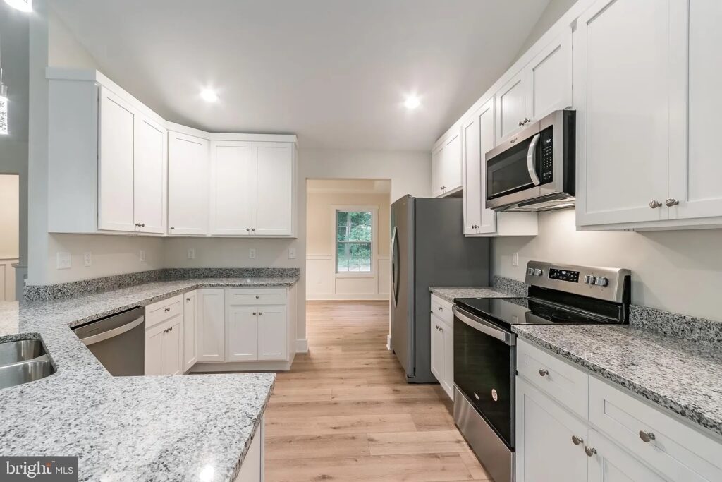 Step inside to a welcoming foyer that opens into a vaulted great room, seamlessly connected to the dining area and a chef-inspired kitchen featuring granite countertops, soft-close cabinetry, and a large island perfect for family meals or entertaining guests. Every element has been carefully designed to balance warmth, light, and flow.