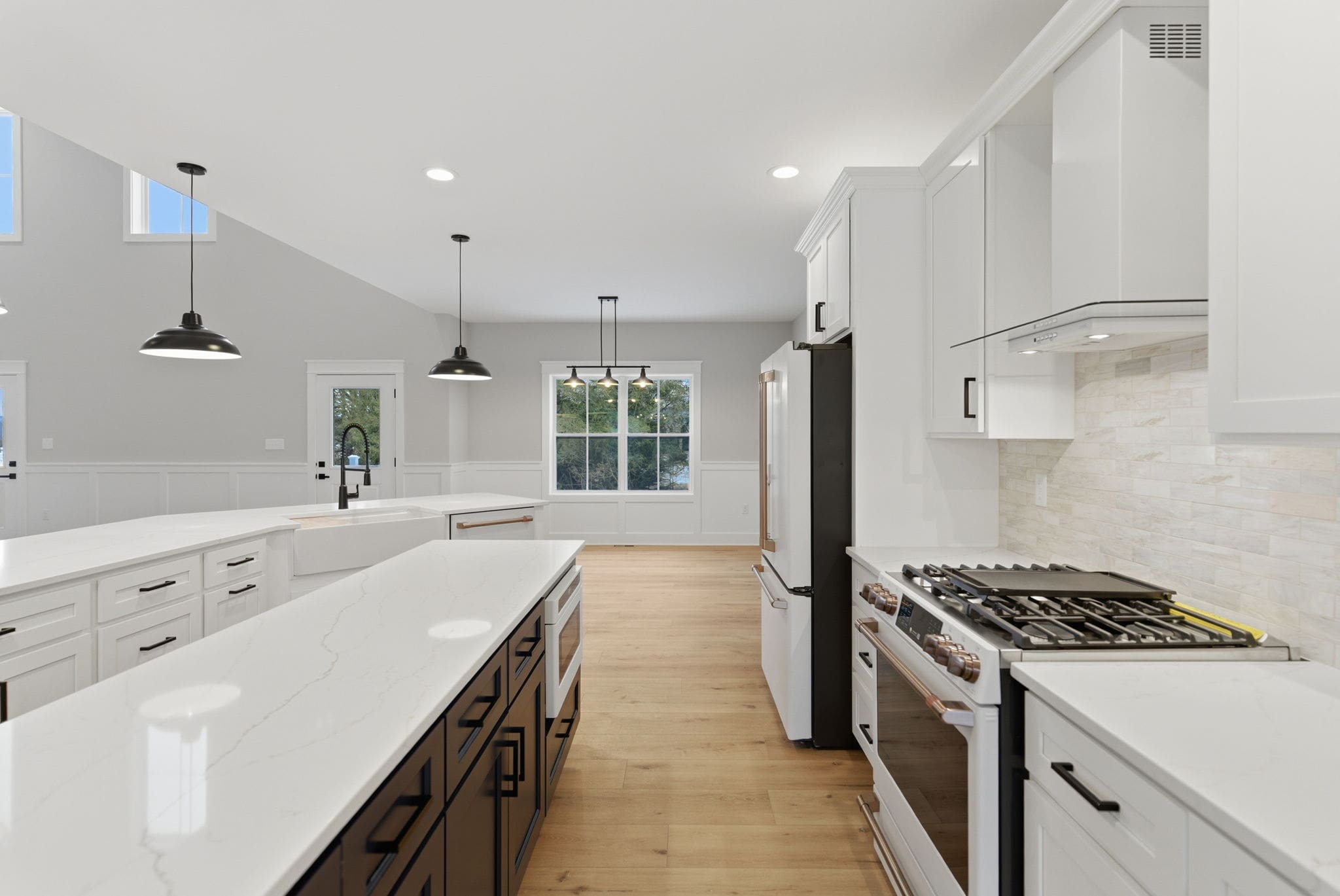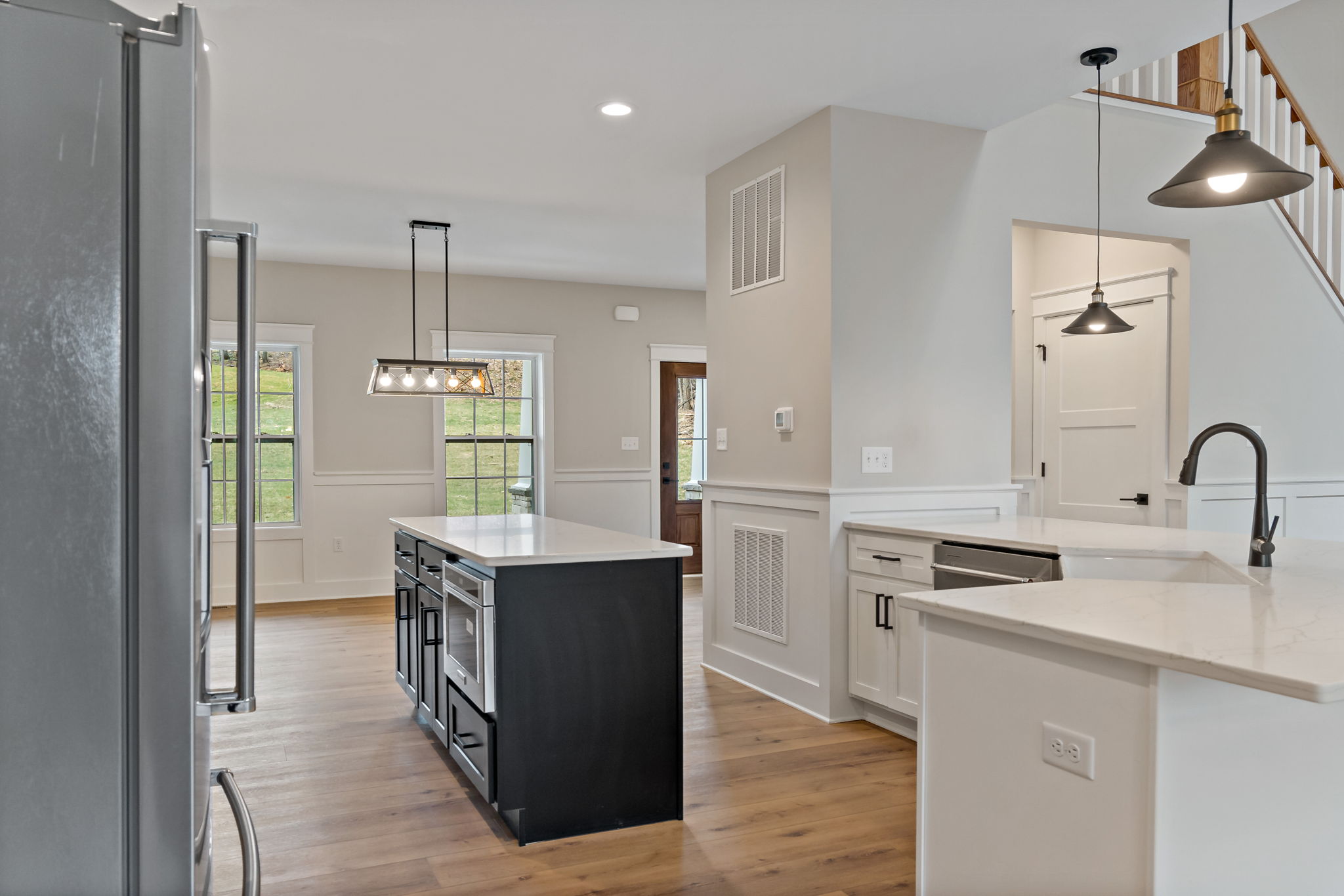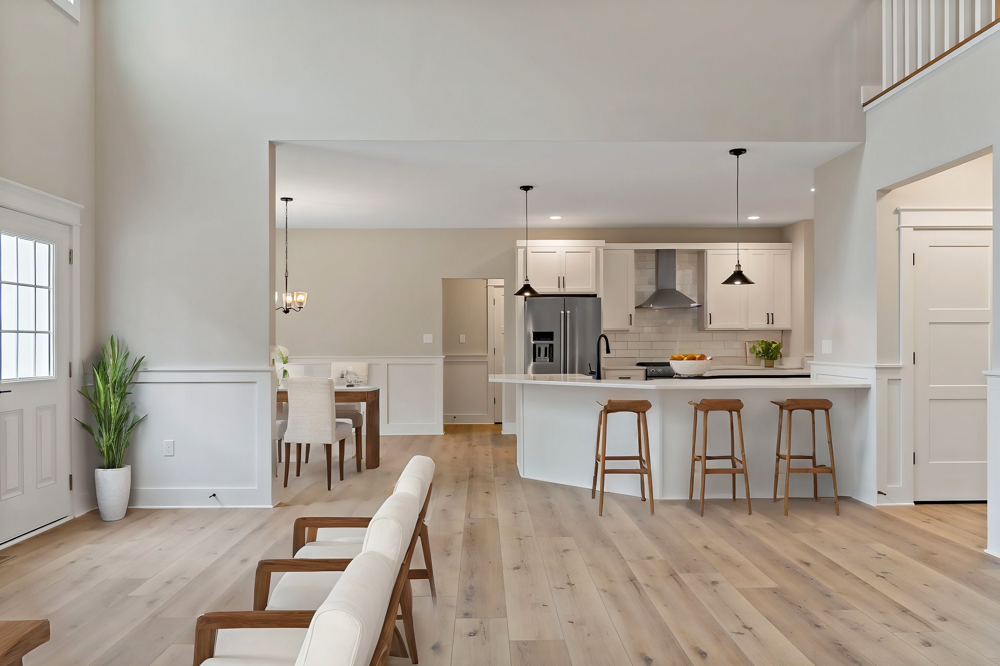 Upon arrival, a gracious foyer welcomes you into a space defined by presence and flow. The adjacent formal living and dining rooms transition gracefully into the heart of the home: a spacious great room bi-level with features that encourage both everyday comfort and elevated entertaining. The chef-style kitchen boasts generous cabinetry, a large island, and direct connection to the dining and family spaces—ideal for hosting or casual gatherings alike.