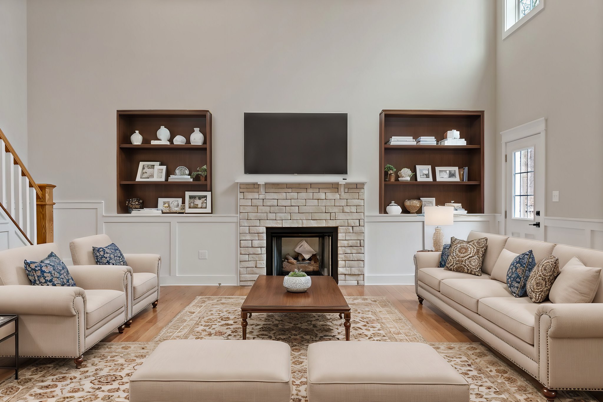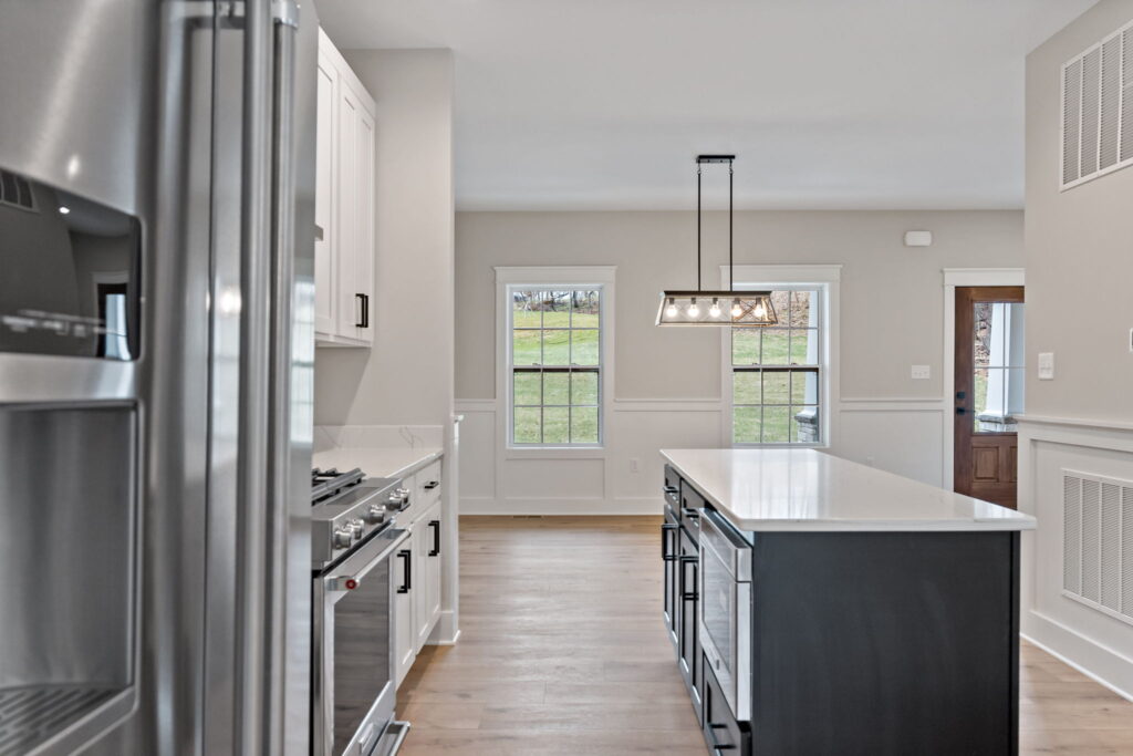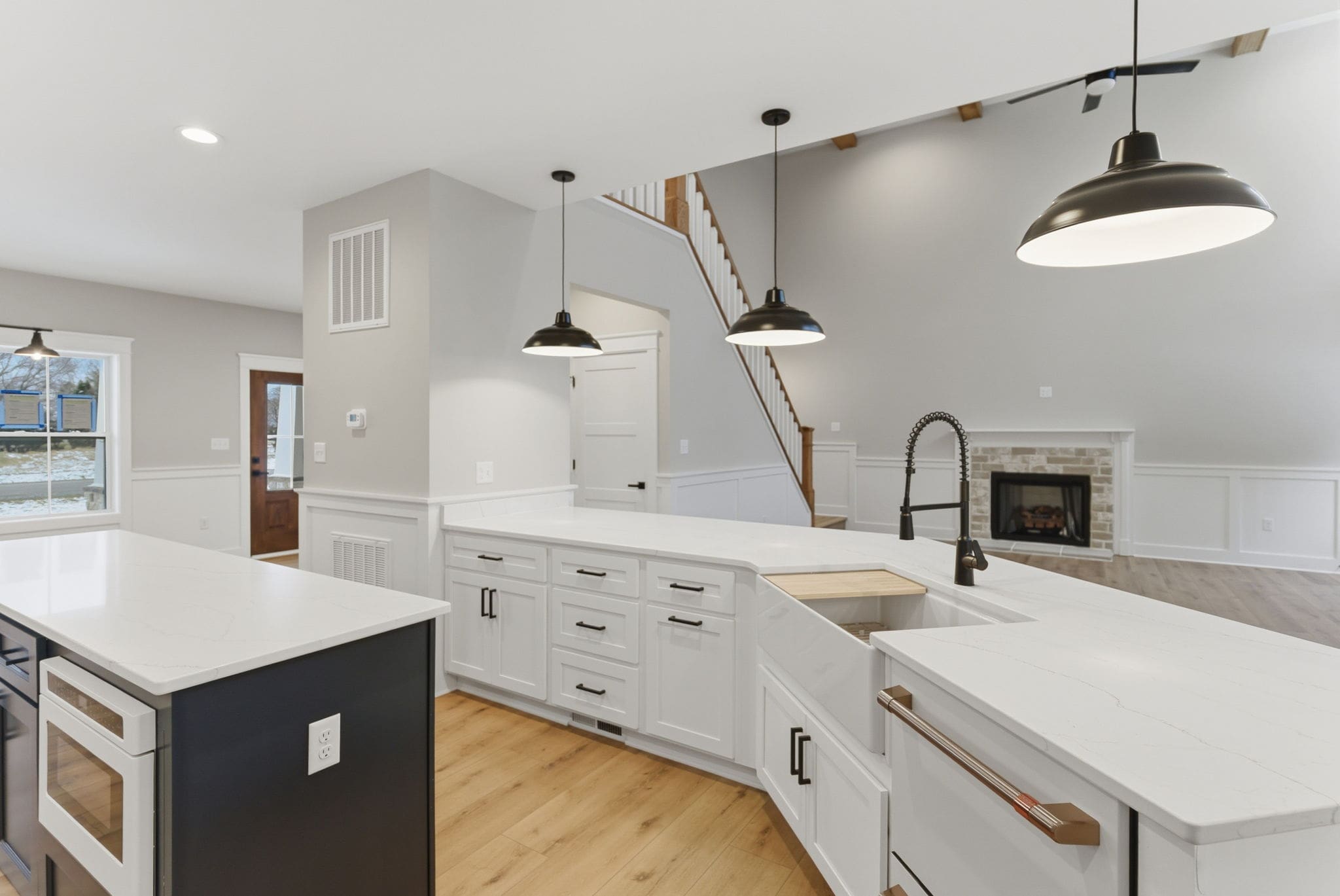 Upon arrival, a gracious foyer welcomes you into a space defined by presence and flow. The adjacent formal living and dining rooms transition gracefully into the heart of the home: a spacious great room bi-level with features that encourage both everyday comfort and elevated entertaining. The chef-style kitchen boasts generous cabinetry, a large island, and direct connection to the dining and family spaces—ideal for hosting or casual gatherings alike.