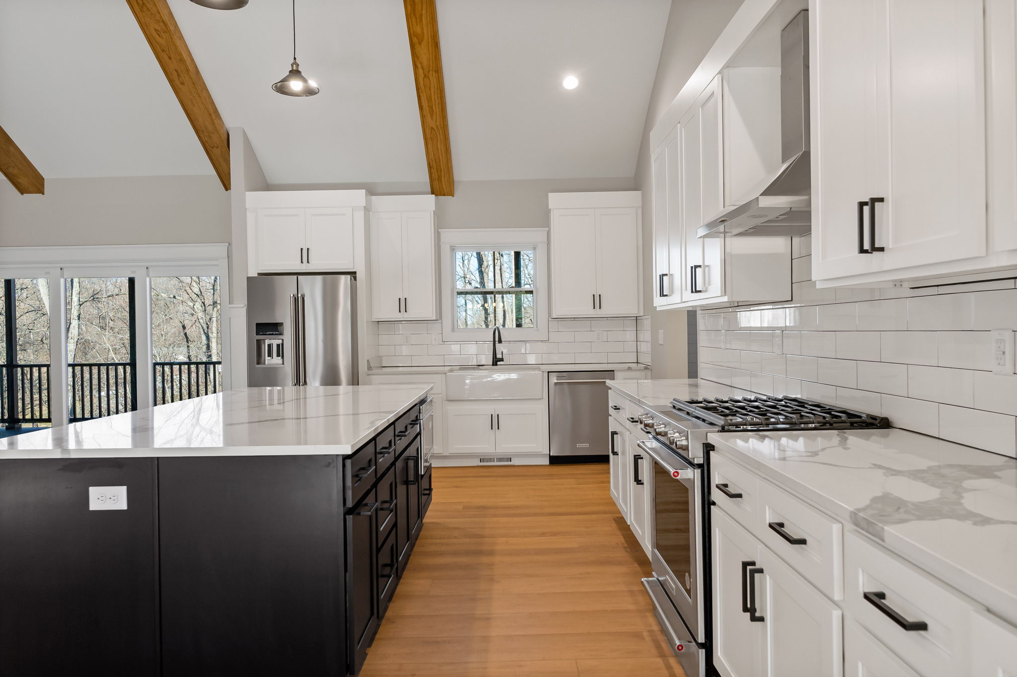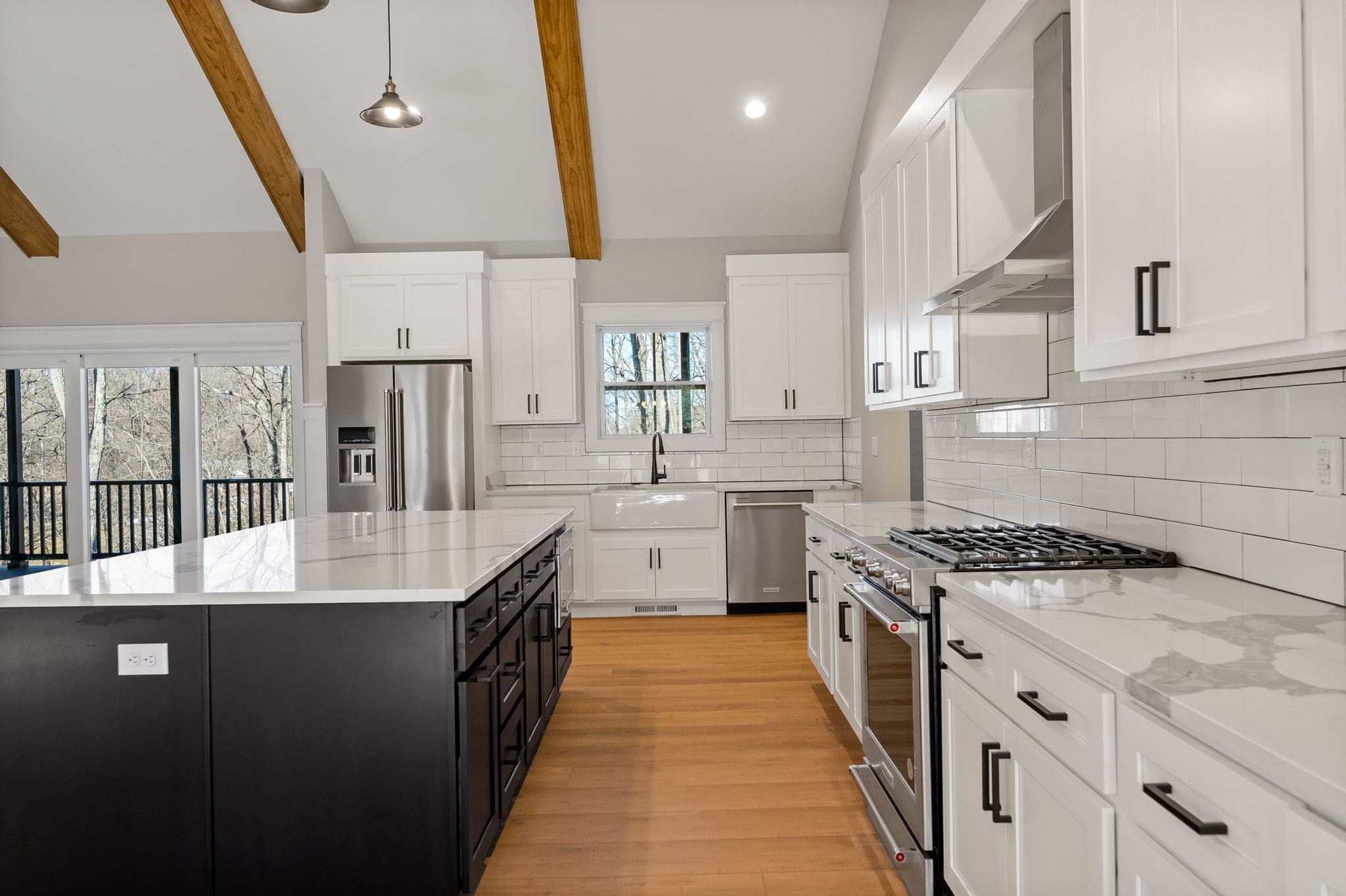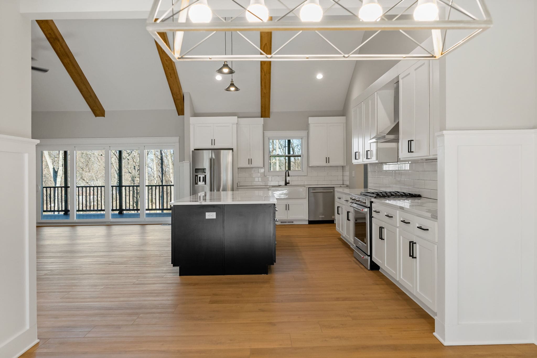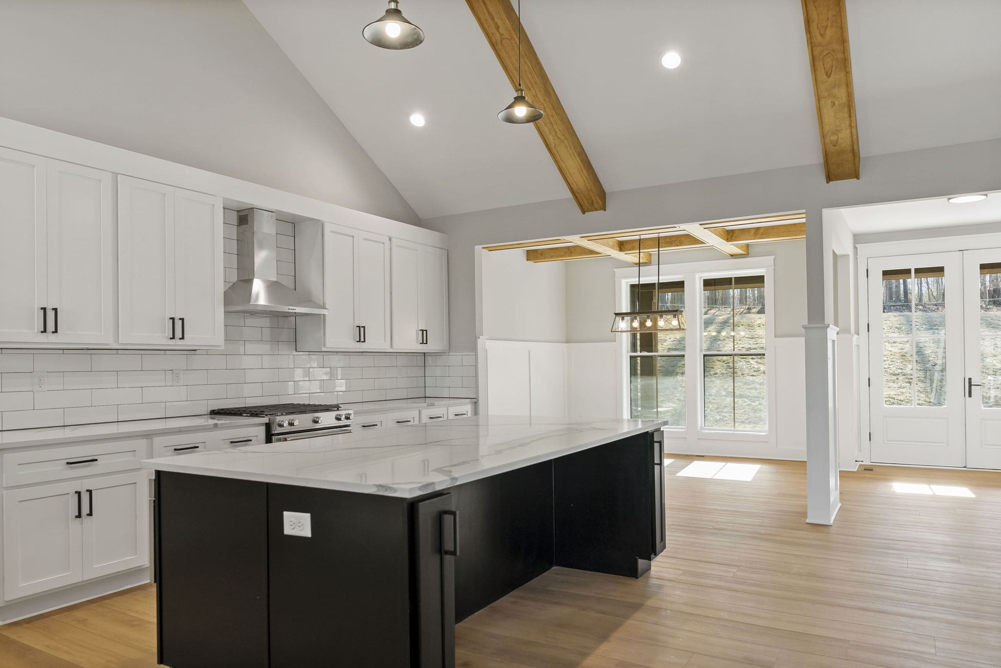 Enter through a gracious foyer into a formal living room that transitions into the heart of the home: an open kitchen, dining and great room arrangement where vaulted ceilings and wide-open sightlines create both presence and comfort. The kitchen features a large island, ample cabinetry, and a layout that invites both daily ease and entertaining grandeur. The primary suite is a refined retreat with ample space, a walk-in closet, and a luxurious en-suite bath with dual vanities and a walk-in shower.